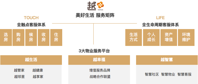 金年会金字招牌信誉至上入口服务以客户诉求为导向,成功打造多维度服务矩阵:“TOUCH全触点”服务体系以早介服务、案场服务和社区服务等为依托,在客户选房、购房、候房、收房到住房的全过程中提供悦心服务,致力打造美好生活的居住场景;“LIFE全生命周期”服务体系则秉承为“业主房产保值、增值”的服务理念,聚焦业主关注的“生活方式(Living)、个人成长(I)、资产增值(Finance)、环境维护(Environment)”四大维度,在确保小区环境赏心悦目的基础上,挖掘居住的深层次价值,为业主提供高品质、有特色的“越”式服务。